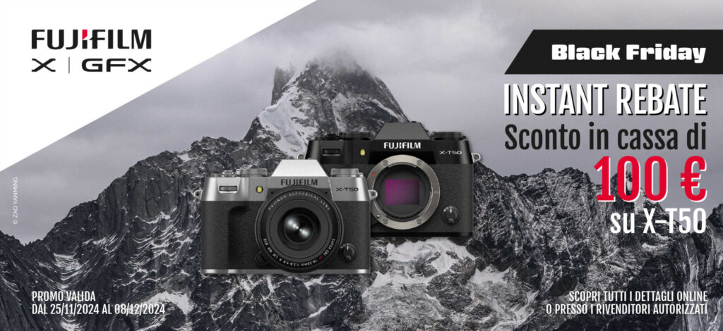 FUJIFILM Italia presenta la promozione Instant Rebate dedicata alla fotocamera X-T50, il modello tra i più compatti e versatili della Serie X, progettato per essere sempre in  azione e offrire una qualità d’immagine eccezionale. Dal 25 novembre all’8 dicembre sarà possibile acquistare X-T50 con uno sconto immediato di 100€ IVA inclusa. Lo sconto è valido sia sull’acquisto del solo corpo macchina e sia per il kit con obiettivo XF16-50mm o il kit con XC15-45mm.