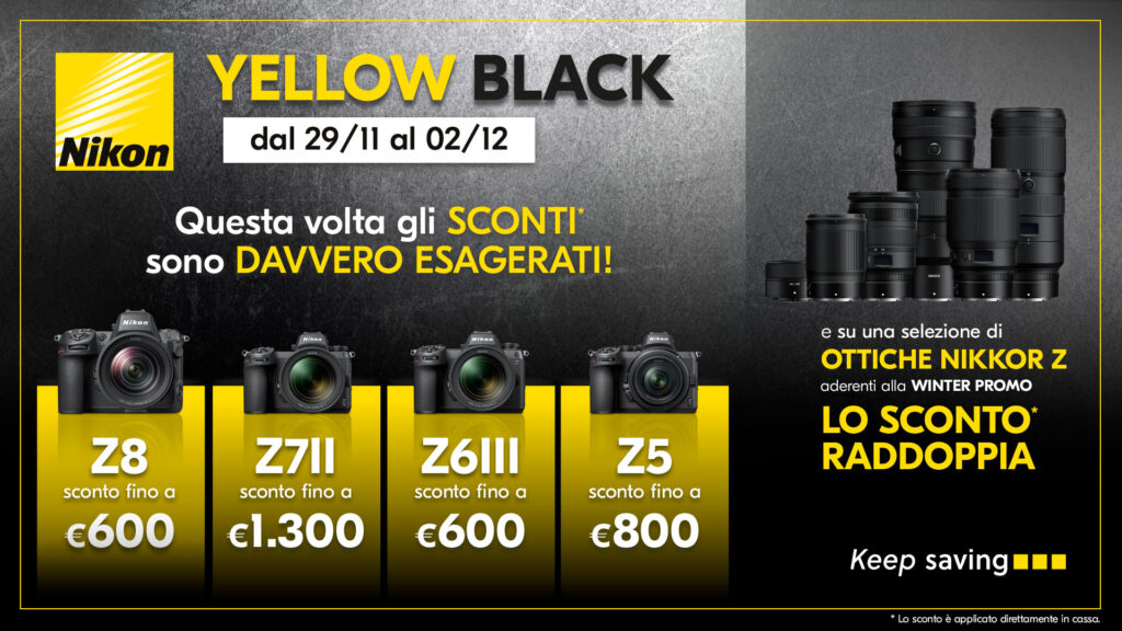 Iniziativa valida dal 29 novembre al 2 dicembre su acquisti Nikon nuovi ufficiali Italia contraddistinti dal sigillo di Garanzia Nital 4 Anni.